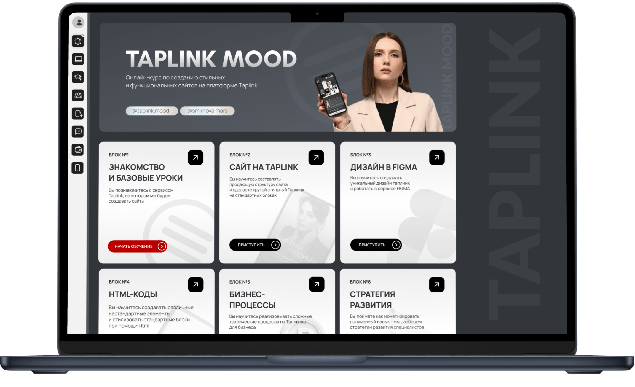 Вам выдан БЕСПЛАТНЫЙ доступ к 1 блоку курса TAPLINK MOOD!